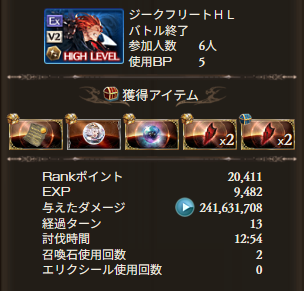 しれっと載せているけど240万しか稼げていません。次水古戦場と発表されたばかりのタイミングでそしてジークはシュレディンガーのリビルドに必要なのでまったく速度に追いつけなかった。けど運が良かったので落ちた(標語)