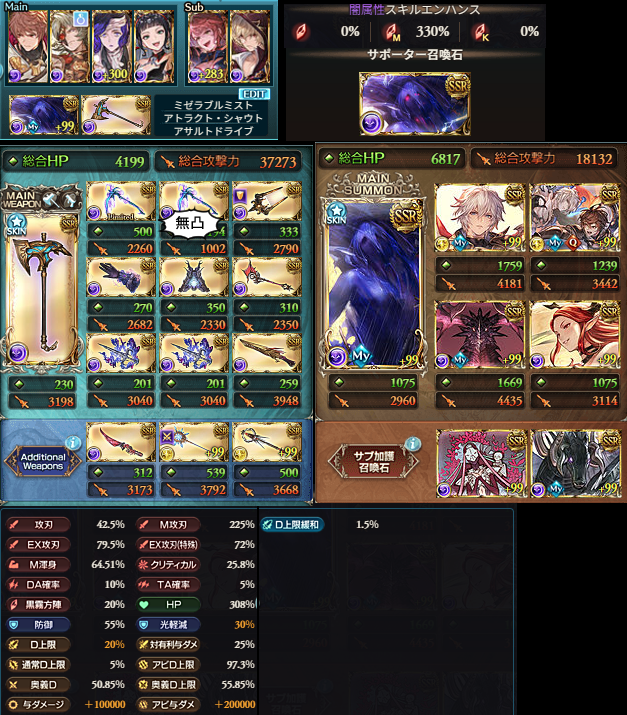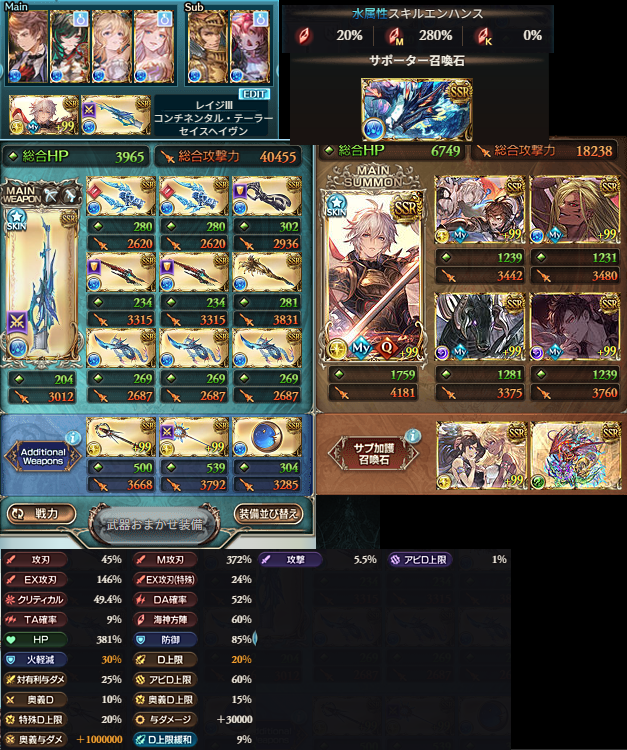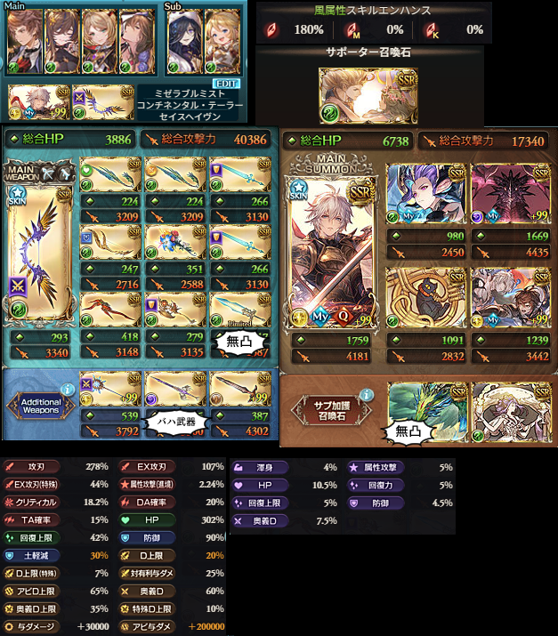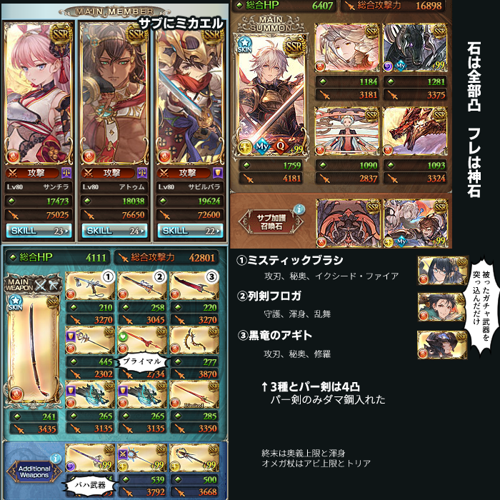 前の記事から武器はそのままでキャラだけ変えてます。あとメイン石とクイック召喚トリゼロに。